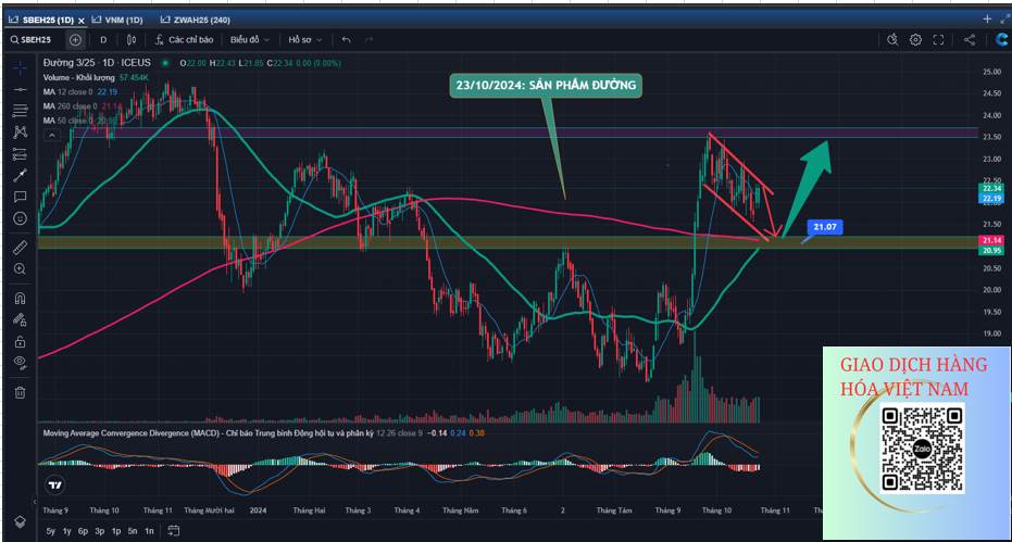Về kỹ thuật, giá đường vẫn đang đi trong xu thế tăng lớn. Trong ngắn hạn trên khung D, giá đang đi điều chỉnh tích lũy trong mô hình cờ tăng.Anh chị có thể chờ mua lại quanh 21.20 giá gãy 20.70 có thể cắt đợi giá đẹp hơn.