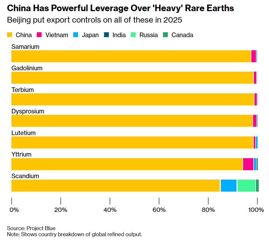 Cao trào xảy ra vào tháng 4/2025, khi Bắc Kinh đưa bảy loại đất hiếm vào diện kiểm soát xuất khẩu chỉ vài ngày sau đợt tấn công thương mại lớn của Mỹ. Động thái này gây chấn động chuỗi sản xuất toàn cầu. Trung Quốc thậm chí còn đe dọa áp dụng “thẩm quyền ngoài lãnh thổ” đối với các sản phẩm trên toàn thế giới có chứa dù chỉ hàm lượng nhỏ vật liệu có nguồn gốc Trung Quốc — dù sau đó các biện pháp này được tạm hoãn theo thỏa thuận thương mại mới.