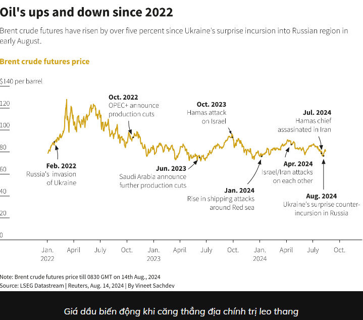- Sự hội tụ của các yếu tố rủi ro đã đẩy và kéo thị trường năng lượng toàn cầu trong những ngày gần đây, và có rất ít dấu hiệu cho thấy điều đó sẽ giảm bớt. Mối lo ngại rằng xung đột đang lan rộng ở Trung Đông và đe dọa nguồn cung từ khu vực này đã đẩy giá dầu thô quốc tế lên trên 80 USD/ thùng.