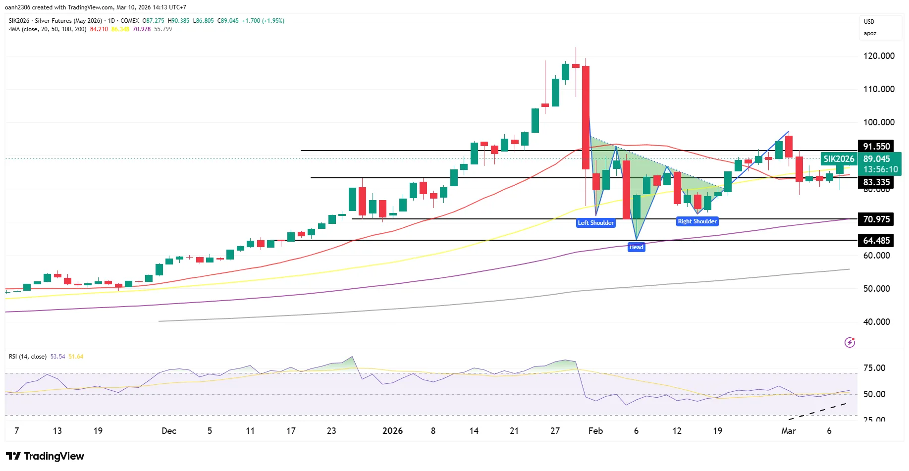 Dự báo giá bạc 10/03/2026: Mô hình đột phá cho thấy đà tăng giá phía trước.