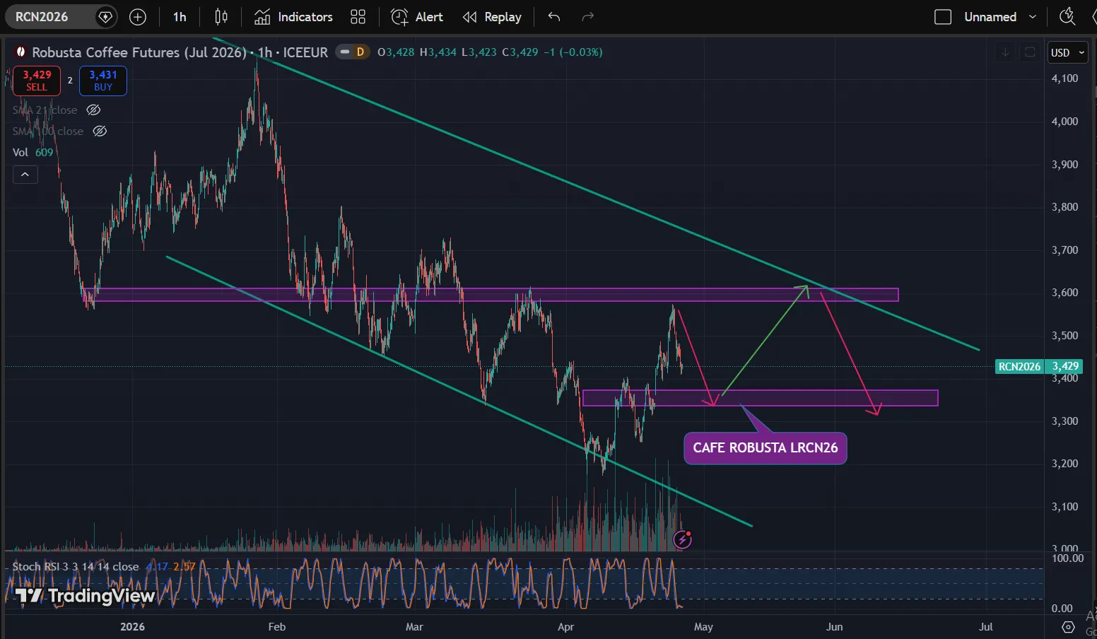 Trước mắt giá cà sẽ có nhịp test lại hỗ trợ mình đánh giá sẽ quanh 3,350-3,380$/tấn, rồi giá cafe sẽ tiếp tục hỗ trợ và có nhịp hỗ trợ tăng trở lại, mốc kiểm định có thể sẽ quanh 3,620$-3,650/tấn.