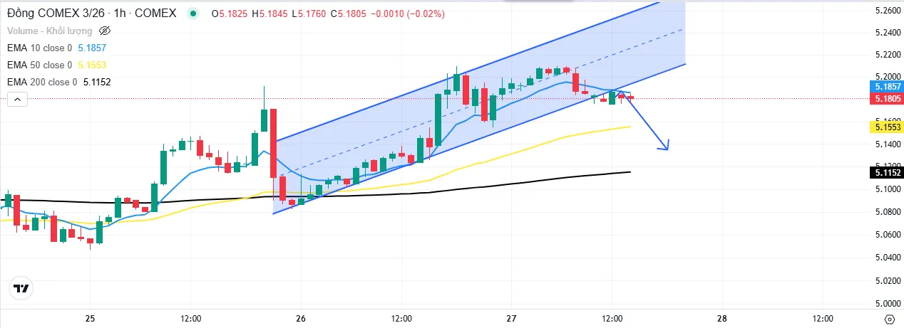 Giá đồng COMEX tháng 3/2026 đã phá vỡ kênh tăng hình thành từ ngày 26–27.
