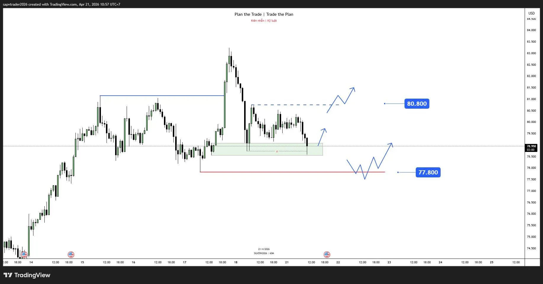 - Kịch bản 1: Từ giá hiện tại H1 đóng nến tạo đáy tạm thời thì canh mua lên 80.8, Phá qua 80.8 thì canh mua tiếp lên 83.3