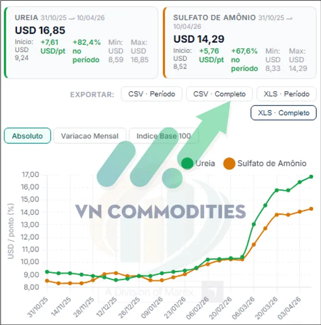Chi phí phân đạm của nông dân Brazil đang tăng rất mạnh trong khi giá ngũ cốc lại giảm, làm gia tăng áp lực lên lợi nhuận sản xuất. Quyết định trước mắt hiện tập trung vào lúa mì và ngô vụ hè. Chỉ trong khoảng 50 ngày, chi phí urê tính theo mỗi điểm đã tăng khoảng 70%, còn amoni sunfat tăng 43%.