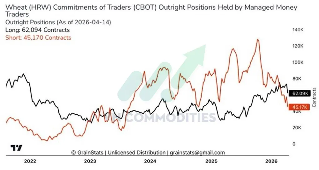 Dù thị trường đang xuất hiện nhiều yếu tố hỗ trợ như giá phân bón tăng và tình trạng khô hạn lan rộng, các quỹ đầu cơ vẫn chưa gia tăng mạnh vị thế mua đối với lúa mì Kansas.