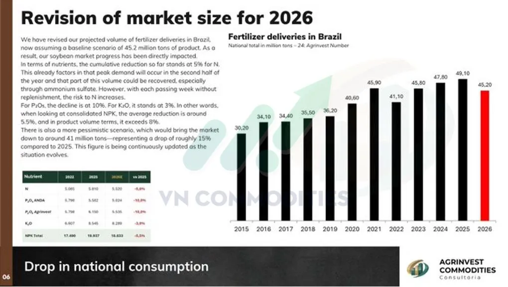 Nhu cầu phân bón tại Brazil trong năm 2026 được dự báo sẽ bị điều tiết giảm, đặc biệt ở khu vực phía Bắc và bang Paraná.