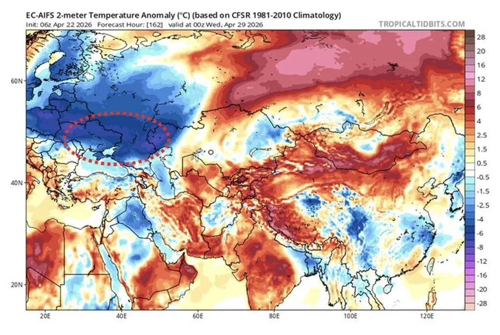 Thị trường lúa mì đang xuất hiện rủi ro thời tiết đáng chú ý tại khu vực Biển Đen, khi nhiệt độ cuối tháng 4 xuống thấp bất thường, đe dọa đến vụ lúa mì vụ đông. Lịch sử cho thấy các đợt rét muộn trong 2 năm gần đây đều gây ảnh hưởng rõ rệt đến năng suất. Đặc biệt, giai đoạn tháng 4–5/2024, giá lúa mì kỳ hạn toàn cầu đã bật tăng khoảng 25% sau khi sương giá làm thiệt hại mùa vụ Nga.