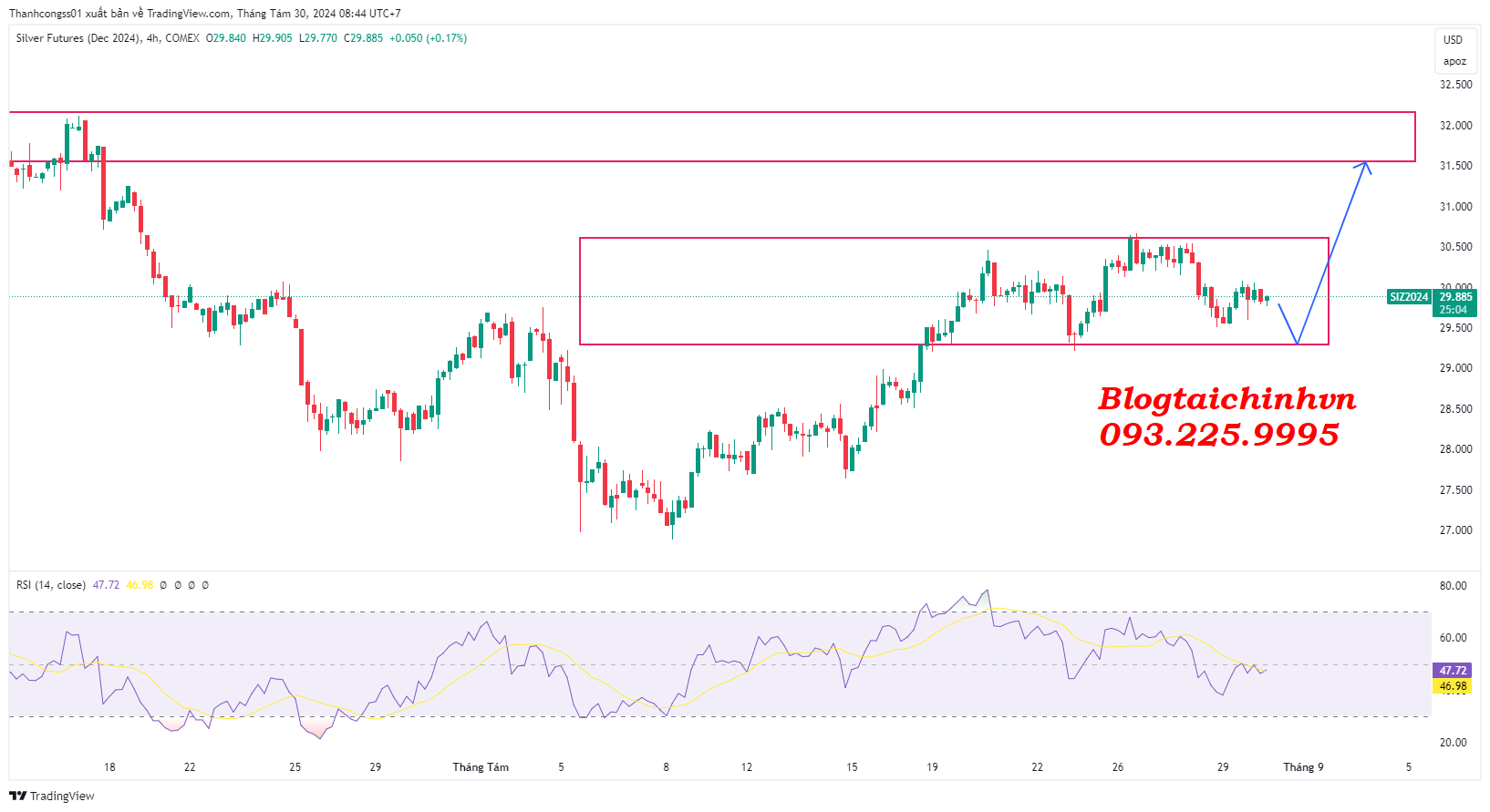 - Phân tích Bạc 30/8– Bạc kỳ hạn tháng 12(SIEZ24) phiên ngày hôm qua tiếp tục đi ngang với biên độ 29,5x-30,0x. Hoa Kỳ công bố nhiều dữ liệu kinh tế vào hôm qua, trong đó có dữ liệu GDP vượt kỳ vọng và số đơn xin trợ cấp thất nghiệp thấp hơn dự báo và Bạc đã chịu áp lực suy giảm sau tin công bố, nhưng dữ liệu doanh số nhà chờ bán sau đó công bố yếu hơn rất nhiều so với kỳ vọng đã khiến Bạc được hỗ trợ tăng trở lại. Hôm nay thị trường tập trung vào dữ liệu Core PCE Hoa Kỳ – Dữ liệu đánh giá lạm phát ưa thích của FED được lên lịch công bố vào 19:30 theo giờ Hà Nội.