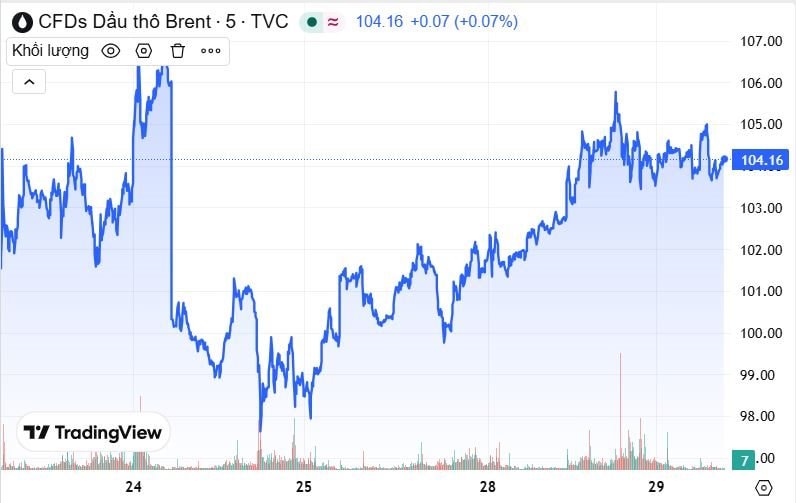 Giá dầu tiếp tục là tâm điểm khi căng thẳng Mỹ – Iran chưa có dấu hiệu hạ nhiệt. Kết thúc phiên 28/4, dầu Brent giao tháng 6 tăng 0,47% lên 111,78 USD/thùng, trong khi dầu WTI tăng 0,57% lên 100,50 USD/thùng, nối dài chuỗi tăng mạnh trước đó. Sang phiên 29/4, giá điều chỉnh nhẹ nhưng vẫn neo ở vùng cao.