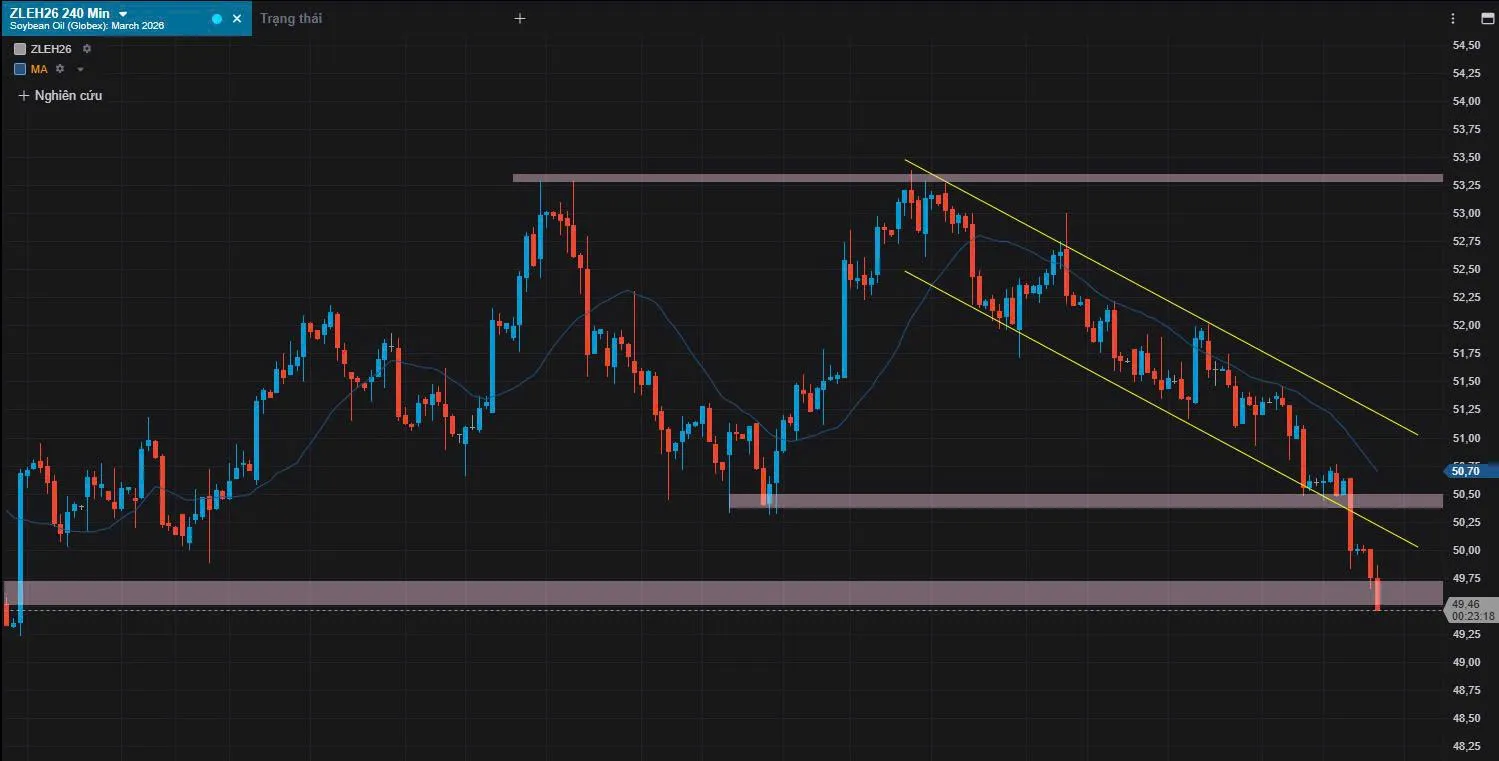 📝 Giá dầu đậu tương đang lùi về vùng hỗ trợ cũ quanh 49.5, khu vực có xác suất cao xuất hiện phản ứng hồi kỹ thuật. Ưu tiên quản trị rủi ro chặt chẽ khi giao dịch.